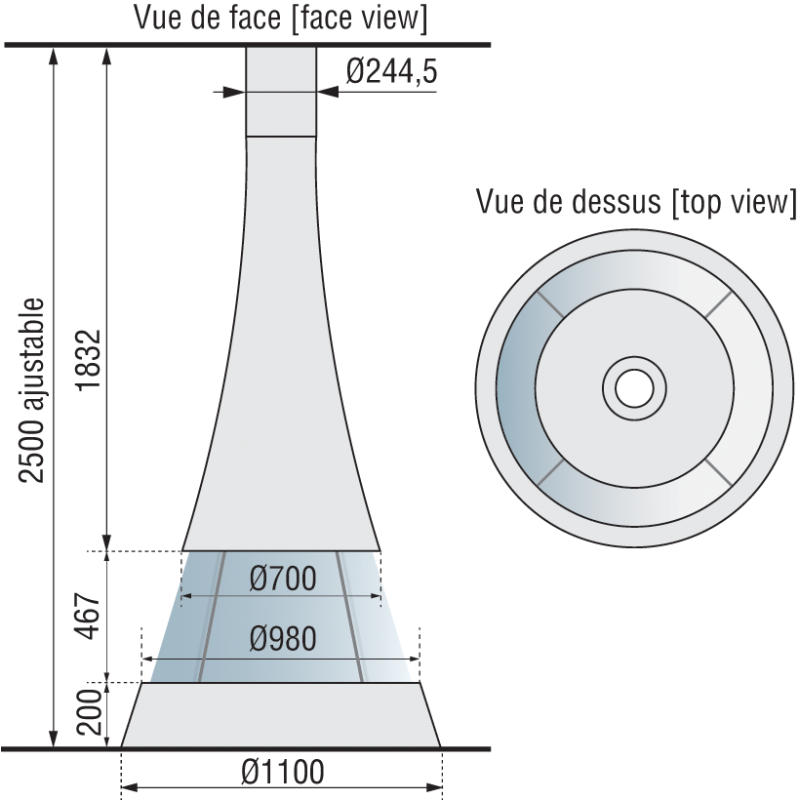 - Gali būti pritaikomas įvairiems patalpos aukščiams (kaina nurodyta 2.5 m aukščio patalpai)