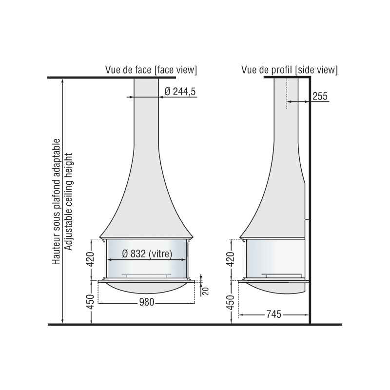 - Dūmtraukio diametras - 245 mm