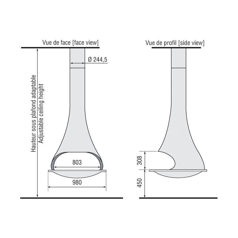 - Dūmtraukio diametras - 245 mm