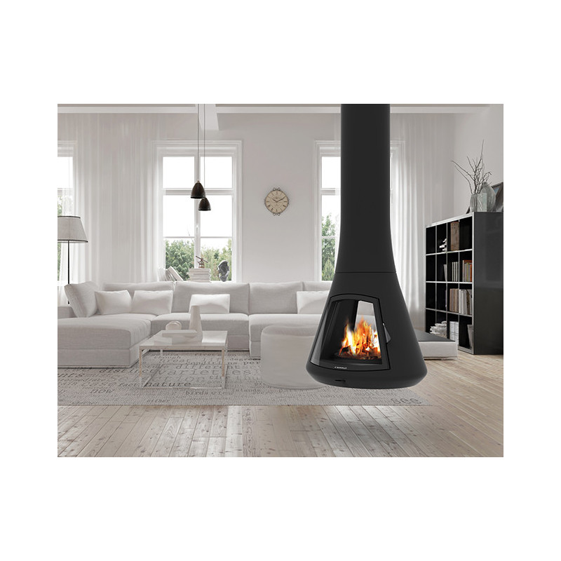 Plieninis židinys Bordelet Calista 917, centrinis, antracito spalvos, 9 kW. Židinys tvirtinamas prie lubų ir montuojamas patalpos viduryje. Įrenginio degimo kamera su vitro keraminiu stiklu todėl ugnį galima stebėti per dureles. Židinys Bordelet Calista 917 gali būti pritaikomas pagal patalpos aukštį ar stogo nuolydį (nurodyta kaina 2.5 m aukščio patalpai). Į komplektą įeina: pelenų dėžė, sklendė ir grotelės. Židinys Bordelet Calista 917 gali būti dažomas Jūsų pasirinkta spalva karščiui atspariais dažais. Židinį galima užsisakyti su trisieniu dūmtraukiu. Suteikiama 5 metų garantija korpusui.