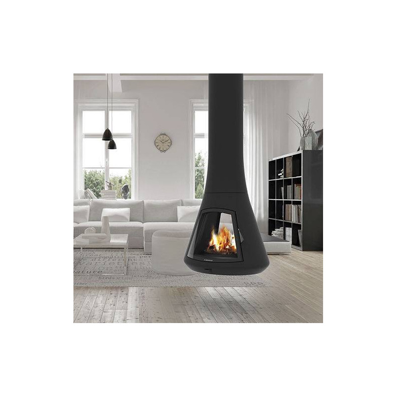 Plieninis židinys Bordelet Calista 917, centrinis, antracito spalvos, su dviem įsitiklintais fasadais, 9 kW. Židinys tvirtinamas prie lubų ir montuojamas patalpos viduryje. Įrenginio degimo kamera su vitro keraminiu stiklu todėl ugnį galima stebėti per dureles. Židinys Bordelet Calista 917 gali būti pritaikomas pagal patalpos aukštį ar stogo nuolydį (nurodyta kaina 2.5 m aukščio patalpai). Į komplektą įeina: pelenų dėžė, sklendė ir grotelės. Židinys Bordelet Calista 917 gali būti dažomas Jūsų pasirinkta spalva karščiui atspariais dažais. Židinį galima užsisakyti su trisieniu dūmtraukiu. Suteikiama 5 metų garantija korpusui.