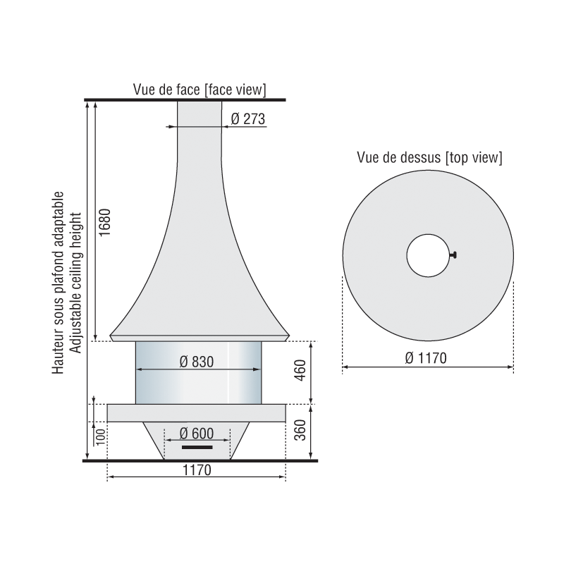 Plieninis židinys Bordelet EVA 992, centrinis, juodos spalvos, su šamotiniu (10 cm) pagrindu apačioje, 11 kW. Uždaras židinys montuojamas patalpos viduryje ir tvirtinamas prie lubų. Įrenginio pakura su keturių dalių keraminiu stiklu, todėl ugnį galima stebėti iš visų pusių. Židinys Bordelet EVA 992 gali būti pritaikomas pagal patalpos aukštį (nurodyta kaina 2.5 m aukščio patalpai). Į komplektą įeina: pelenų dėžė, sklendė ir grotelės. Židinys Bordelet EVA 992 gali būti dažomas Jūsų pasirinkta spalva karščiui atspariais dažais. Suteikiama 5 metų garantija korpusui.