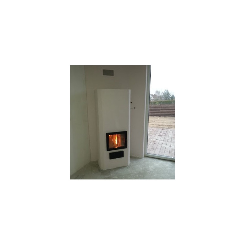 Židinys akumuliuojantis šilumą, Su papildoma sklende, Baltos spalvos, Juodos durys, Pajungimas iš apačios, Itin lengvas montavimas, Taupo kurą ir neteršia aplinkos, Matmenys(PxAxG) 700x1570x500 mm, Apšildomas plotas 30 - 50 m2