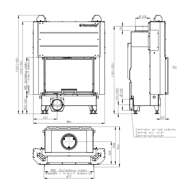 Plieninis židinio ugniakuras Romotop KV HEAT H3LE01, 12 kW