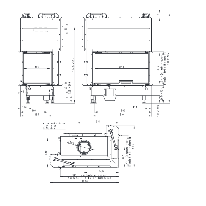 Plieninis židinio ugniakuras Romotop HL3LF01, 15.6 kW