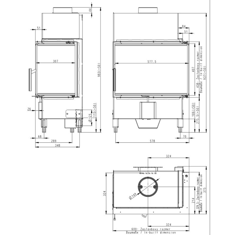 | Židinio aukštis (bendras), mm | 983 |