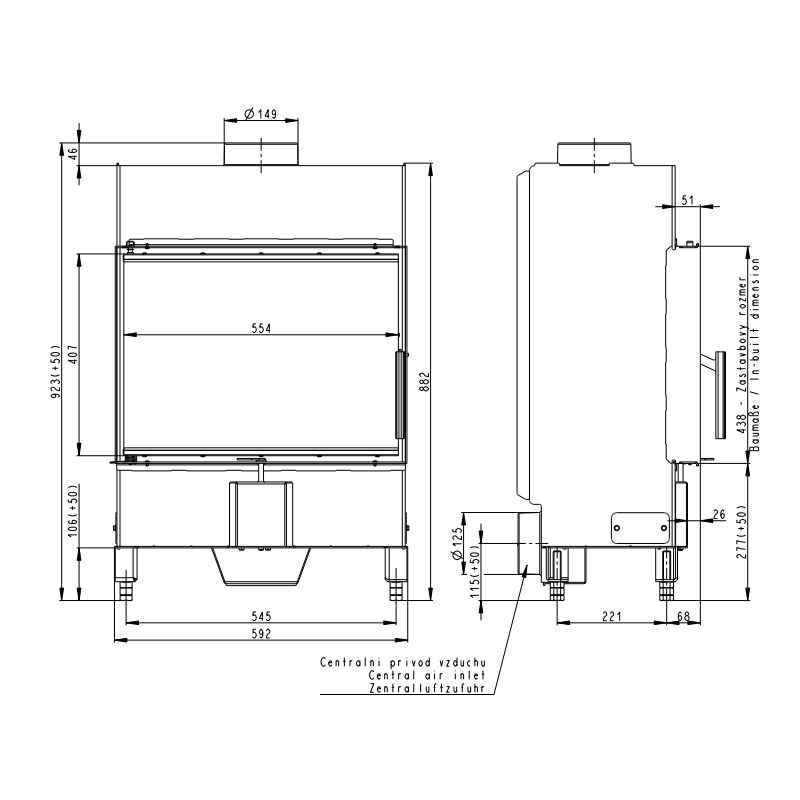 Plieninis židinio ugniakuras Romotop KV Heat H2T13, iki 7 kW