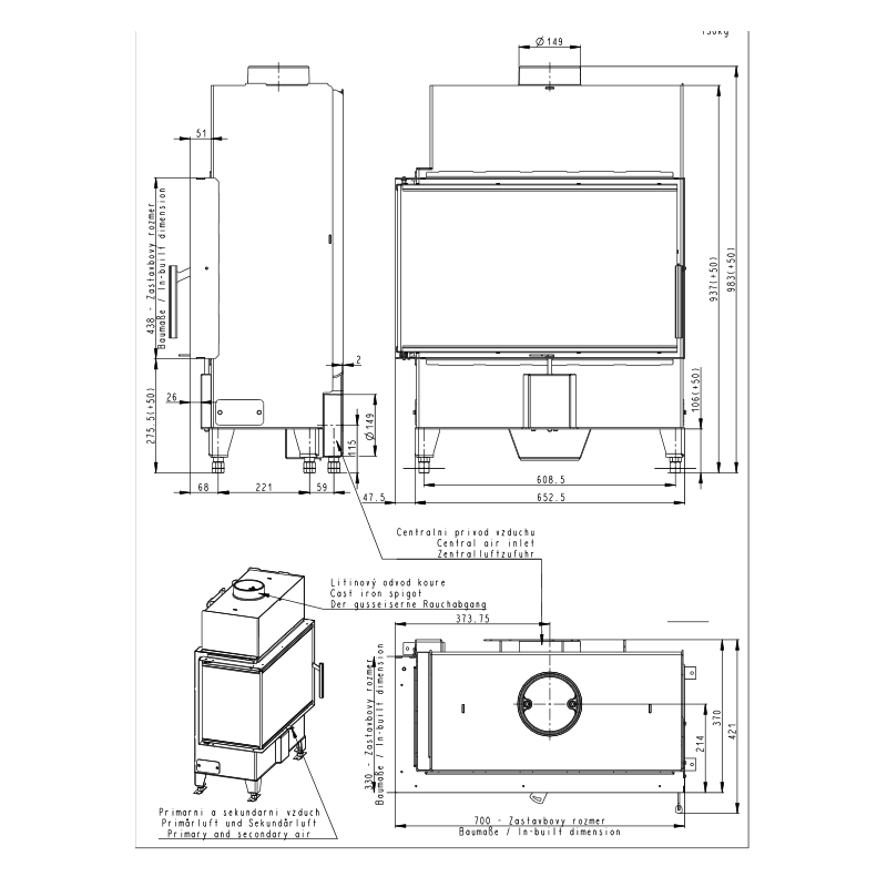 | Židinio aukštis (bendras), mm | 983 |