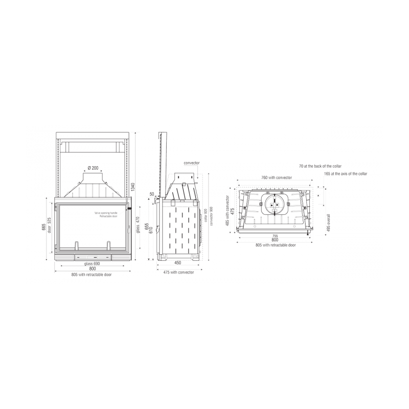 | Židinio aukštis (bendras), mm | 1340 |