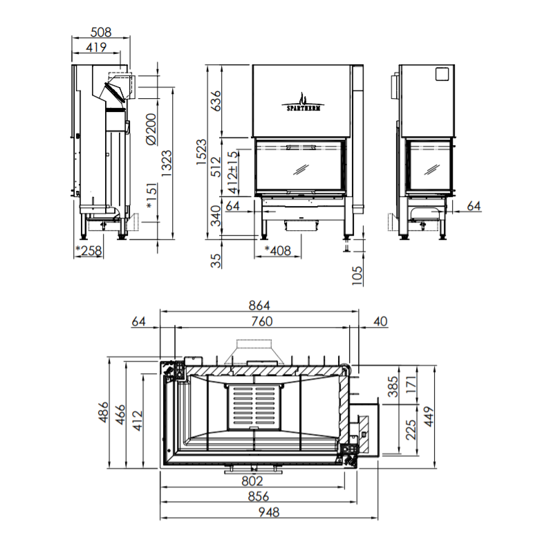 Plieninis židinio ugniakuras Spartherm Varia 2L-80h-4S, 13.5 kW