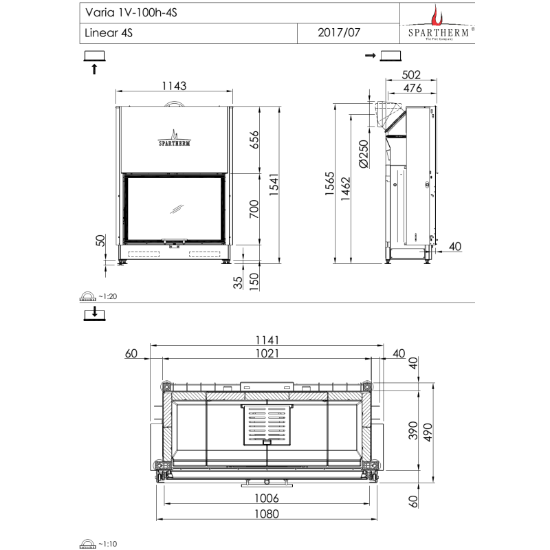 Plieninis židinio ugniakuras Spartherm Varia 1V-100h-4S (tiesiu stiklu), su šamotu, todėl šildymas tampa dar efektyvesnis, o didelis tiesus stiklas leis patogiai stebėti ugnį. Ugniakurą labai lengva įkomponuoti ir priderinti prie interjero. Ugniakuras išsiskiria aukšta kokybe, nes ugniakurai Spartherm gaminami Vokietijoje iš aukštos kokybės 3-4 mm plieno, kuris pasižymi atsparumu korozijai. Spartherm skiria didelį dėmesį techninėms charakteristikoms ir korozijai atspariam gaminio paviršiui. Plieninis židinio ugniakuras Spartherm Varia 1V-100h-4S naudoja mažiau kuro, dėl aukšto naudingumo koeficiento (80 %). Oro tiekimui reguliuoti naudojama valdymo svirtis. Ugniakuro Spartherm Varia 1V-100h-4S degimo kamera išklota šamotu, dėl to jis pasižymi aukštesne degimo temperatūra, švariu stiklu bei mažesniu anglies dvideginio išmetimu į aplinką. Švaraus stiklo palaikymo sistema apsaugo stiklą nuo prilipusių suodžių, todėl jis išlieka švarus ilgiau ir taip palengvėja jo priežiūra. Suteikiama 5 metų garantija korpusui.