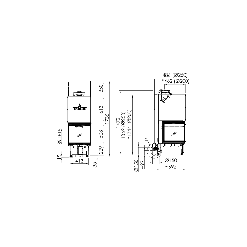 Plieninis židinio ugniakuras Spartherm Arte U-50h-4S