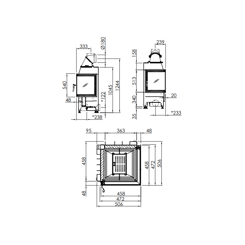 | Židinio aukštis (bendras), mm | 1244 |