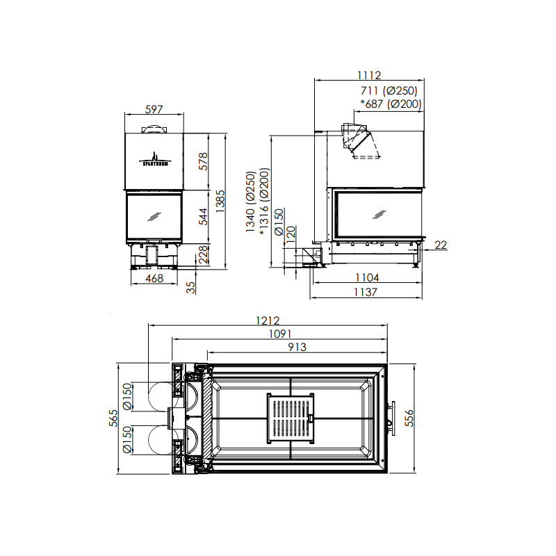 | Židinio aukštis (bendras), mm | 913 |