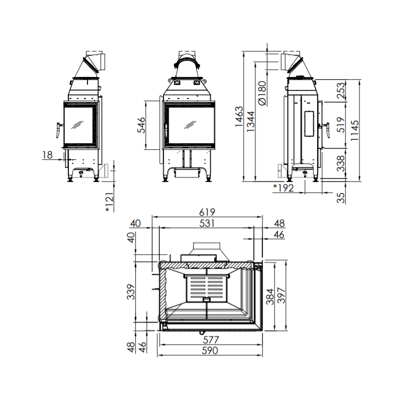| Židinio aukštis (bendras), mm | 1463 |
