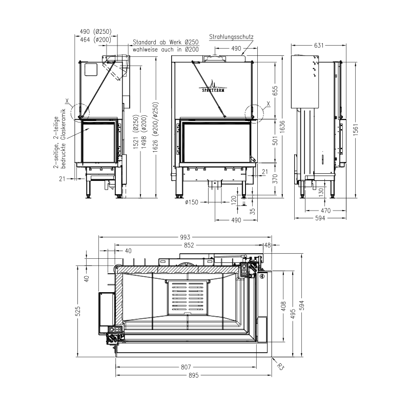 | Židinio plotis (ilgis), mm | 993 |