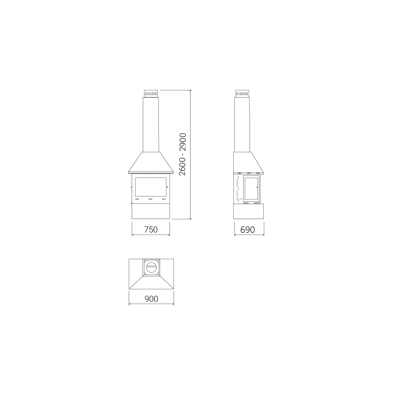 - Korpusas, viršus ir dūmtraukis pasirinktos spalvos iš RAL paletės