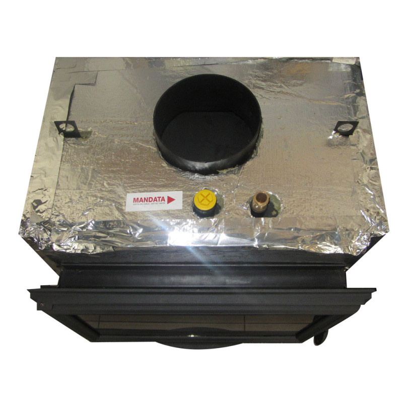 Židinio kapsulė su vandens kontūru, Automatinis oro padavimo reguliavimas, Šildymo sistemos pajungimas, Šilumokaičio galia 12.0kW, Konvekcija 7.5kW, Cirkuliacinio siurblio valdymas, 722x694x553mm