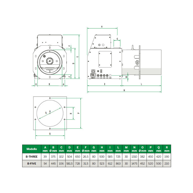 Granulių degiklis su padavimo šneku, Šiluminis galingumas 35-350 kW, Granulių suvartojimas 7-70 kg/val., 5 pakopų galios moduliacija, LED indikacija, Atbulinės liepsnos vožtuvas, Garantija 2 m., Galimas kompresoriaus pajungimas