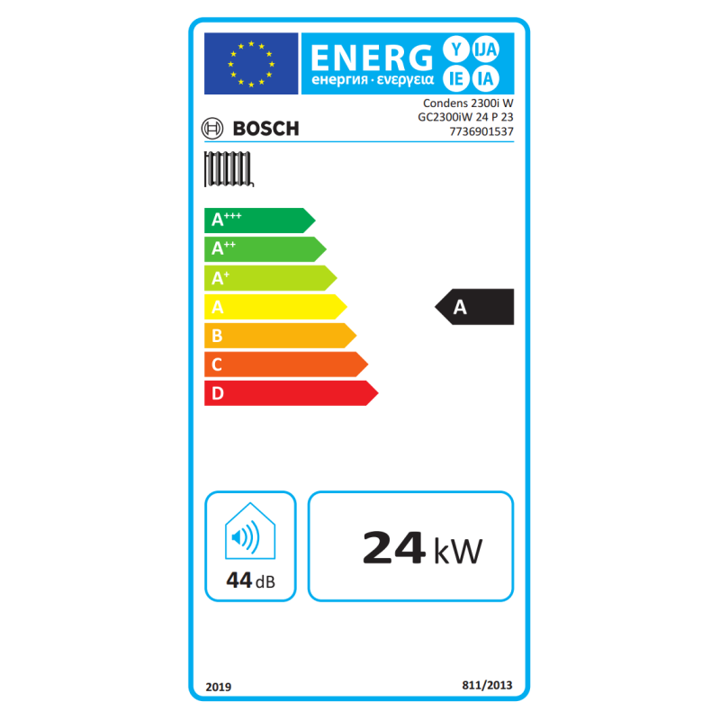 Kondensacinis dujinis katilas Bosch Condens 2300iW 24P, 25 kW. Katilas skirtas šildyti patalpas ir ruošti karštą vandenį. Katilas su aliuminio ir silicio lydinio šilumokaičiu, kuris pasižymi itin dideliu vandens srauto pralaidumu, geresniu šilumos atidavimu bei geresne apsauga nuo šilumokaičio užkalkėjimo. Sistema pasižymi mažu išmetamų teršalų į aplinką kiekiu, todėl šis pasirinkimas puikus norint tausoti aplinką. Bosch Condens 2300iW 24P katilas su itin aukštu naudingumo koeficientu (93 %), todėl yra puikus pasirinkimas norintiems šildytis ekonomiškai. Bosch Condens 2300iW 24P katilą dengianti medžiaga pasižymi garsą sugeriančiomis savybėmis, todėl įrenginio veikimas nekelia papildomo diskomforto. Įdiegta valdymo pagal išorės temperatūrą funkcija, įmontuotas A klasės siurblys ir 6 l išsiplėtimo indas. Katilo ilgaamžiškumą garantuoja efektyvus degimo procesas. Montažinę plokštę, s-vamzdžius montažinei plokštei bei išorinį sifoną reikia užsakyti atskirai. Suteikiama 2 metų garantija.
