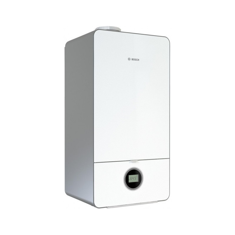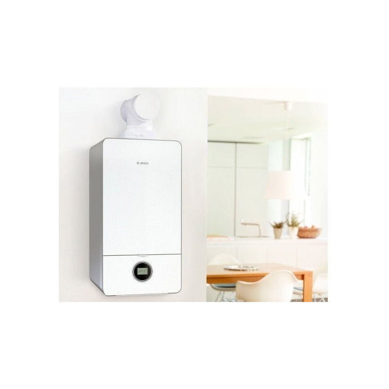 Kondensacinis dujinis katilas Bosch Condens GC 7000iW 24P, 25 kW, grūdinto stiklo paviršius. Katilas skirtas šildyti patalpas ir ruošti karštą vandenį. Katilas su šilumokaičiu, kuris pasižymi itin dideliu vandens srauto pralaidumu, geresniu šilumos atidavimu bei geresne apsauga nuo šilumokaičio užkalkėjimo. Sistema pasižymi mažu išmetamų teršalų į aplinką kiekiu, todėl šis pasirinkimas puikus norint tausoti aplinką. Bosch Condens GC 7000iW 24P katilas su itin aukštu naudingumo koeficientu (93 %), todėl yra puikus pasirinkimas norintiems šildytis ekonomiškai. Bosch Condens GC 7000iW 24P katilą dengianti medžiaga pasižymi garsą sugeriančiomis savybėmis, todėl įrenginio veikimas nekelia papildomo diskomforto. Įdiegta valdymo pagal išorės temperatūrą funkcija, įmontuotas A klasės siurblys ir 12 l išsiplėtimo indas. Katilas suderinamas su Bosch CT100 reguliatoriumi (iki vieno šildymo kontūro) arba internetiniu moduliu MB LAN, kurio dėka galėsite patogiai ir lengvai valdyti šildymo sistemą naudojantis Bosch programėle. Programėlės pagalba galima keisti įrenginio veikimo režimą, temperatūrą, šildymo programą bei gauti pranešimus apie veikimo trikdžius. Katilo ilgaamžiškumą garantuoja efektyvus degimo procesas. Montavimo plokštę reikia užsakyti atskirai. Suteikiama 2 metų garantija.