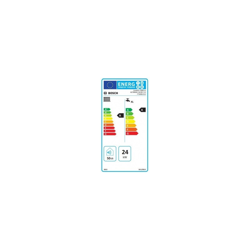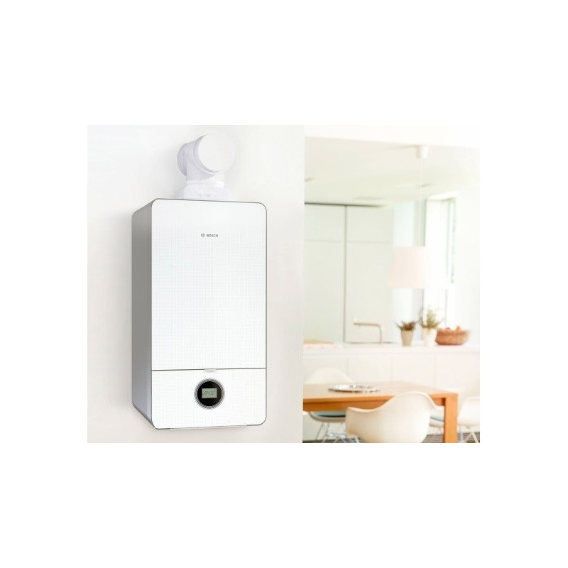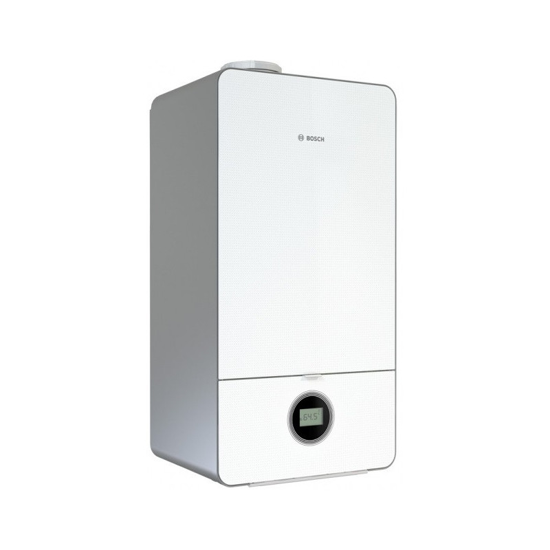Kondensacinis dujinis katilas Bosch Condens GC 7000iW 24/28C, 25 kW, grūdinto stiklo paviršius. Katilas skirtas šildyti patalpas ir ruošti karštą vandenį. Katilas su šilumokaičiu, kuris pasižymi itin dideliu vandens srauto pralaidumu, geresniu šilumos atidavimu bei geresne apsauga nuo šilumokaičio užkalkėjimo. Sistema pasižymi mažu išmetamų teršalų į aplinką kiekiu, todėl šis pasirinkimas puikus norint tausoti aplinką. Bosch Condens GC 7000iW 24/28C katilas su itin aukštu naudingumo koeficientu (93 %), todėl yra puikus pasirinkimas norintiems šildytis ekonomiškai. Bosch Condens GC 7000iW 24/28C katilą dengianti medžiaga pasižymi garsą sugeriančiomis savybėmis, todėl įrenginio veikimas nekelia papildomo diskomforto. Įdiegta valdymo pagal išorės temperatūrą funkcija, įmontuotas A klasės siurblys ir 12 l išsiplėtimo indas. Katilas suderinamas su Bosch CT100 reguliatoriumi (iki vieno šildymo kontūro) arba internetiniu moduliu MB LAN, kurio dėka galėsite patogiai ir lengvai valdyti šildymo sistemą naudojantis Bosch programėle. Programėlės pagalba galima keisti įrenginio veikimo režimą, temperatūrą, šildymo programą bei gauti pranešimus apie veikimo trikdžius. Katilo ilgaamžiškumą garantuoja efektyvus degimo procesas. Montavimo plokštę reikia užsakyti atskirai. Suteikiama 2 metų garantija.