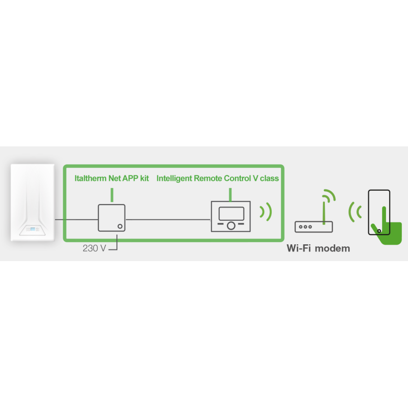 Italtherm Net APP rinkinio pagalba, galėsite nuotoliniu būdu valdyti karštą vandenį ir centrinį šildymą tiesiai iš išmaniojo įrenginio. Italtherm Net APP interneto rinkinys įsigyjamas atskirai. Suteikiama 2 metų garantija.