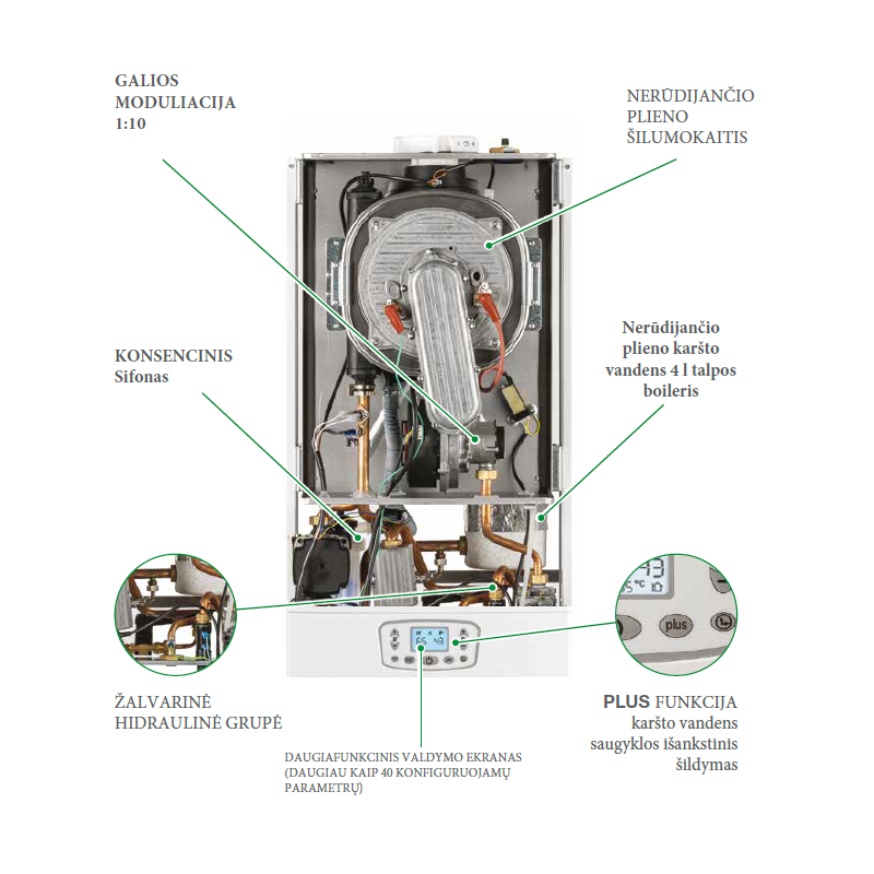 | Katilo tipas | Dujinis kondensacinis katilas |