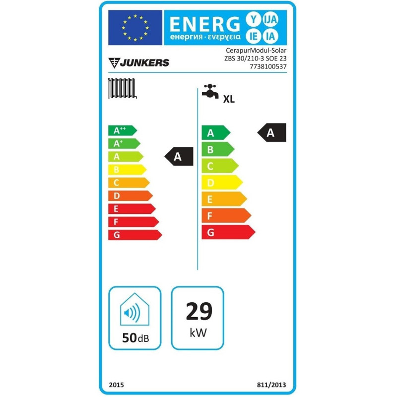 Kondensacinis dujinis katilas Bosch CerapurModul-Solar ZBS 30/210-3 SOE, 30.6 kW. Katilas skirtas šildyti patalpas (žematemperatūriam šildymui) ir ruošti karštą vandenį. Katilas su šilumokaičiu, kuris pasižymi itin dideliu vandens srauto pralaidumu, geresniu šilumos atidavimu bei geresne apsauga nuo šilumokaičio užkalkėjimo. Sistema pasižymi mažu išmetamų teršalų į aplinką kiekiu, todėl šis pasirinkimas puikus norint tausoti aplinką. Bosch CerapurModul-Solar ZBS 30/210-3 SOE katilas su itin aukštu naudingumo koeficientu (92 %), todėl yra puikus pasirinkimas norintiems šildytis ekonomiškai. Bosch CerapurModul-Solar ZBS 30/210-3 SOE katilą dengianti medžiaga pasižymi garsą sugeriančiomis savybėmis, todėl įrenginio veikimas nekelia papildomo diskomforto. Įmontuotas A klasės siurblys, šildymo ir saulės kolektorių sistemų išsiplėtimo indai, manometras, automatinis oro išleidiklis ir temperatūros ribotuvas. Katilas suderinamas su Bosch Heatronic 3 diagnostikos moduliu, jungiamu prie valdymo magistralės HT BUS, todėl būsitė informuoti apie veikimo trikdžius ir defektus. Katilo ilgaamžiškumą garantuoja efektyvus degimo procesas. Suteikiama 2 metų garantija.