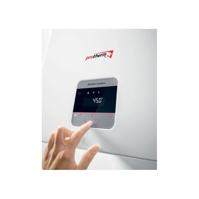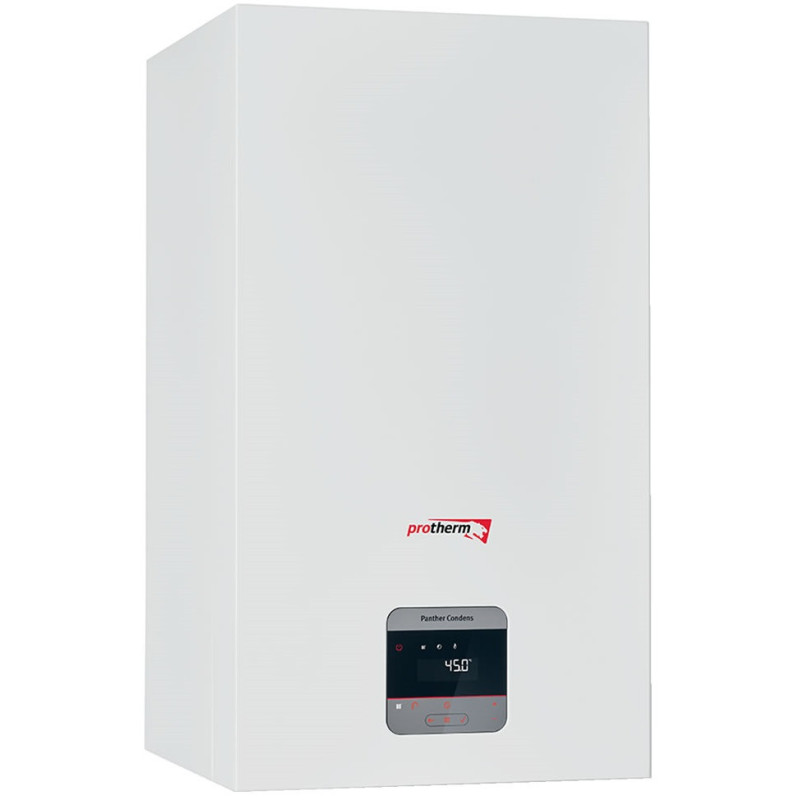 Kondensacinis dujinis katilas Protherm Panther Condens 25 KKO-CS/1, 27 kW, su uždara degimo kamera. Katilas skirtas šildyti patalpas ir ruošti karštą vandenį. Katilas su nerūdijančio plieno šilumokaičiu, kuris pasižymi itin dideliu vandens srauto pralaidumu, geresniu šilumos atidavimu bei geresne apsauga nuo šilumokaičio užkalkėjimo. Sistema pasižymi mažu išmetamų teršalų į aplinką kiekiu, todėl šis pasirinkimas puikus norint tausoti aplinką. Protherm Panther Condens 25 KKO-CS/1 katilas su itin aukštu naudingumo koeficientu (92%), todėl yra puikus pasirinkimas norintiems šildytis ekonomiškai. Protherm Panther Condens 25 KKO-CS/1 katilą dengianti medžiaga pasižymi garsą sugeriančiomis savybėmis, todėl įrenginio veikimas nekelia papildomo diskomforto. Įmontuotas cirkuliacinis siurblys su elektroniniu valdymu ir 8 l išsiplėtimo indas. Įdiegta automatinė gedimų diagnostikos sistema, todėl būsitė informuoti apie veikimo trikdžius ir defektus. Taip pat, saugumui užtikrinti, įmontuotos šios apsaugos sistemos: vandens perkaitimo, užšalimo, netikėto liepsnos dingimo pakuroje, per didelio ar per mažo vandens slėgio. Galimybė prijungti patalpos termoreguliatorių ir lauko temperatūros daviklį. Suteikiama 2 metų garantija.