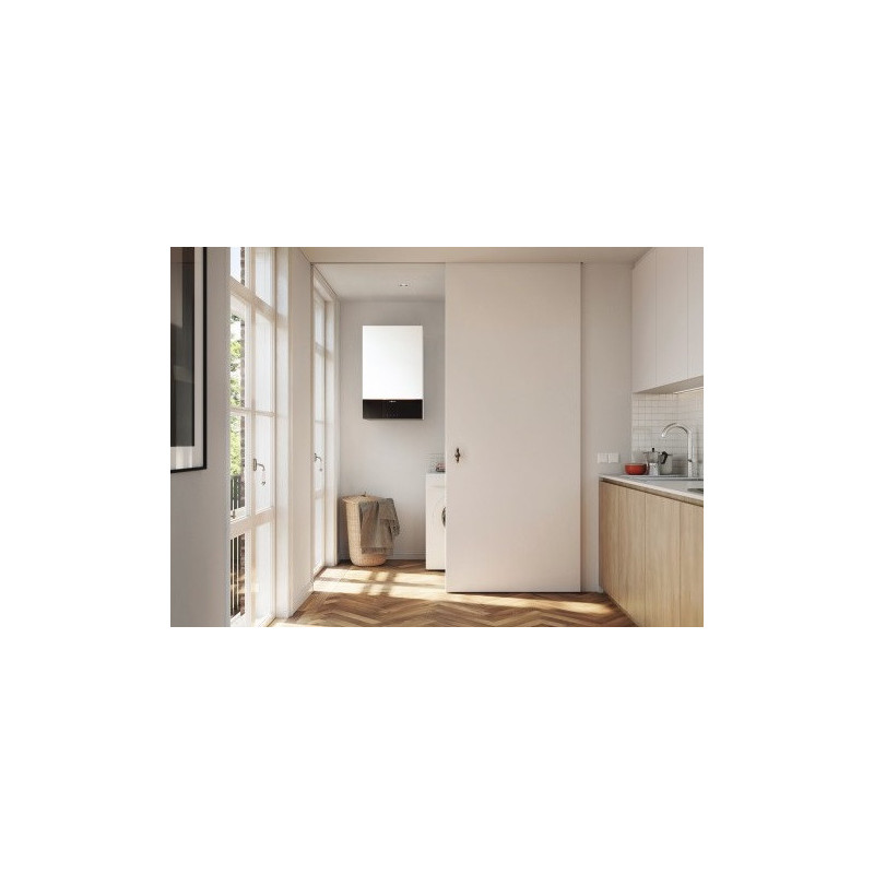Kondensacinis dujinis katilas Viessmann Vitodens 222-W B2LF, 32 kW, su uždara degimo kamera. Katilas skirtas šildyti patalpas ir ruošti karštą vandenį. Katilas su nerūdijančio plieno "Inox-Radial" šilumokaičiu, kuris pasižymi itin dideliu vandens srauto pralaidumu, geresniu šilumos atidavimu bei geresne apsauga nuo šilumokaičio užkalkėjimo. Viessmann Vitodens 222-W B2LF katilas su itin aukštu naudingumo koeficientu (94%), todėl yra puikus pasirinkimas norintiems šildytis ekonomiškai. "Lambda Pro Plus" degimo valdymo sistema veikia ypač efektyviai, neskleidžiant papildomo garso ir pasižymi mažu išmetamų teršalų kiekiu, todėl šis pasirinkimas puikus norint tausoti aplinką. Viessmann Vitodens 222-W B2LF katilą dengianti medžiaga pasižymi garsą sugeriančiomis savybėmis, todėl įrenginio veikimas nekelia papildomo diskomforto. Naudojant „Wi-Fi“ ryšį, šį kondensacinį dujinį katilą galima valdyti nuotoliniu būdu. Integruota 46 l talpa karšto vandens ruošimui. Suteikiama 2 metų garantija.