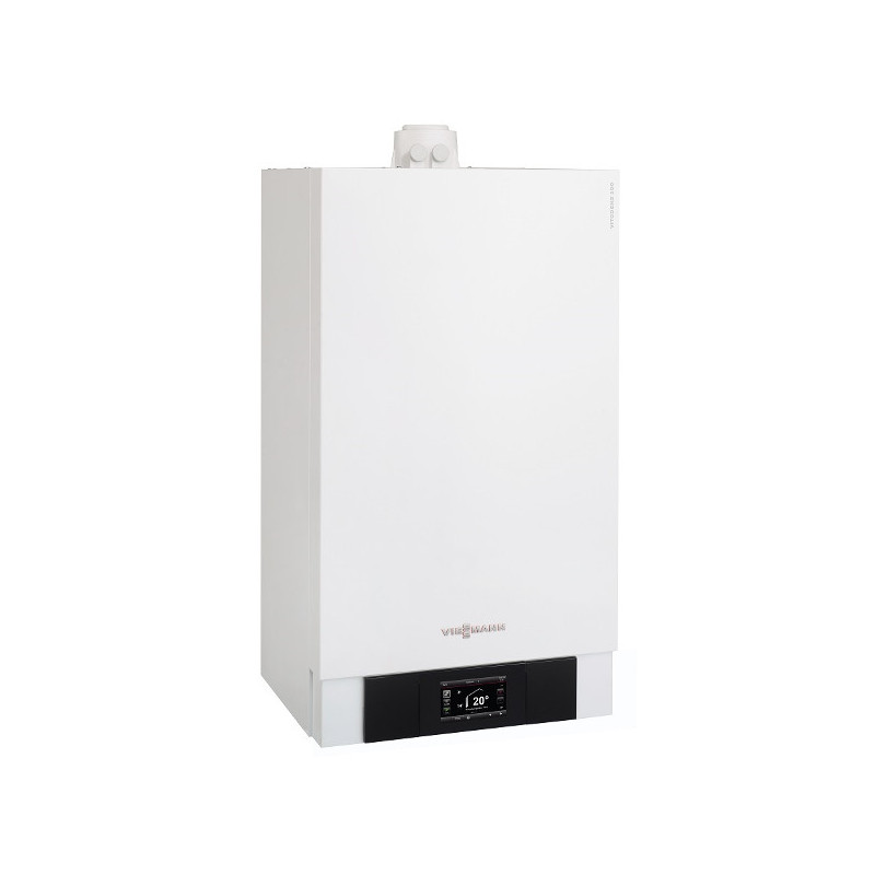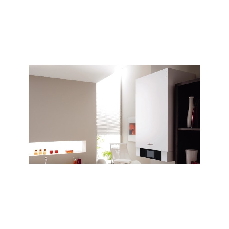 Kondensacinis dujinis katilas su galimybe pajungti tūrinį vandens šildytuvą, Šildymo galingumas 2.6-26kW, Karšto vandens paruošimas 26kW, Vitotronic 100 valdiklis, Aukšto efektyvumo siurblys