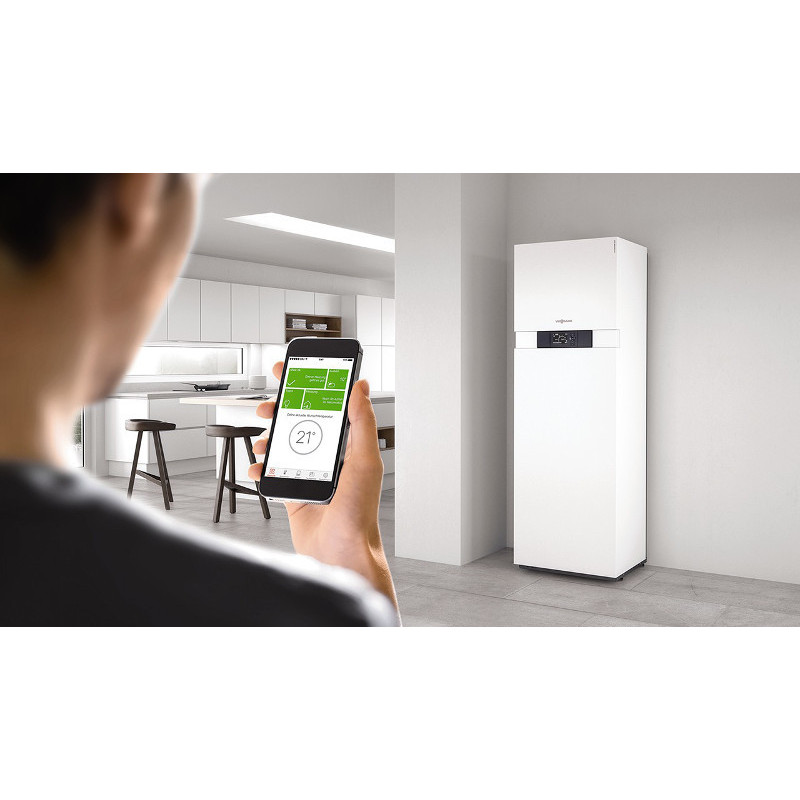 Pastatomas kondensacinis dujinis katilas su integruotu 100L vandens šildytuvu, Šildymo galingumas 1.9-13kW, Karšto vandens paruošimas 13kW, Vitotronic 200 valdiklis
