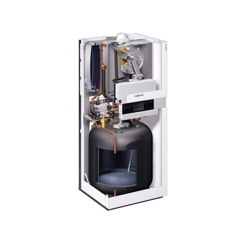 Pastatomas kondensacinis dujinis katilas su integruotu 100L vandens šildytuvu, Šildymo galingumas 1.9-19kW, Karšto vandens paruošimas 19kW, Vitotronic 200 valdiklis