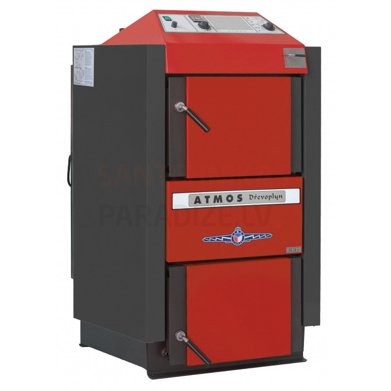 Atmos DC kieto kuro katilai skirti medienos deginimui dujų generacijos principu, naudojant ventiliatorių, kuris pašalina iš katilo degimo produktus arba įpučia orą į katilą. Atmos DC dujų generaciniai katilai pagaminti iš 3-8 mm plieno lakštų. Šildymo katilo pakuros apatinėje dalyje yra ugniai atsparūs atvamzdžiai su pailga anga degimo produktų ir medžio išskirtų dujų nuvedimui. Degimo kamera yra po pakura ir yra padengta keramikiniais blokais. Galinėje Atmos DC šildymo katilo korpuso pusėje yra vertikalus kanalas degimo produktų šalinimui su vožtuvu viršutinėje dalyje, skirtu dujų generacinio katilo užkūrimui. Viršutinėje degimo produktų (dūmų) šalinimo kanalo dalyje taip pat yra atvamzdis pajungimui prie dūmtraukio.