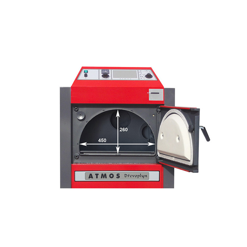 Atmos DC šildymo katilą sudaro dvi kameros, išdėstytos vertikaliai viena virš kitos. Viršutinė kamera skirta medienos malkų įkrovimui, o apatinėje kameroje vyksta degimas ir yra įdėtas pelenų konteineris. Kameras sujungia anga, skirta medienos dujų generavimo skatinimui, užtikrinanti efektyvų pilną kuro sudeginimą. Į keraminiais blokais padengtą apatinę degimo kamerą patenka jau pašiltintas oras ir užtikrina pilną ir efektyvų kuro sudeginimą, išskiriant minimalų kenksmingų dūmų kiekį.