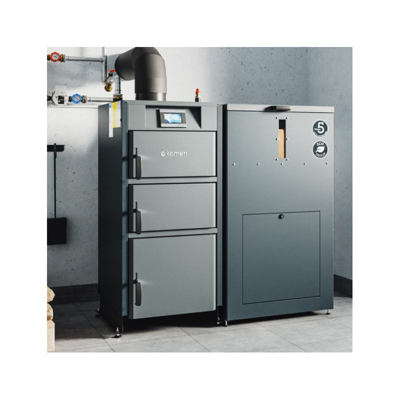 Penktos klasės granulinis katilas Pellet Kompakt Lux yra aukšto naudingumo - 91 % bei atitinka A+ energijos efektyvumo klasę. Katilo Kamen Pellet Kompakt Lux kuro talpa gali būti kairėje, dešinėje arba iš katilo priekio. Lauko temperatūros daviklis komplekte.