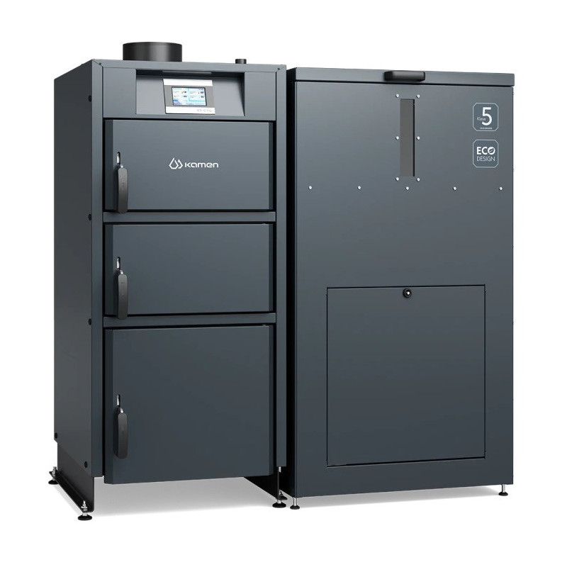 Penktos klasės granulinis katilas Pellet Kompakt Lux yra aukšto naudingumo - 91 % bei atitinka A+ energijos efektyvumo klasę. Katilo Kamen Pellet Kompakt Lux kuro talpa gali būti kairėje, dešinėje arba iš katilo priekio. Lauko temperatūros daviklis komplekte.