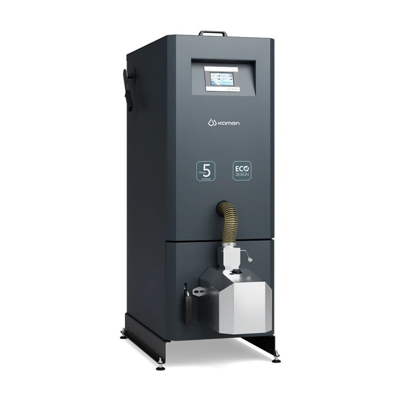 Granulinis katilas Kamen Pellet Perfekt Bio 15 kW - kokybiškas, efektyvus ir patvarus šildymo prietaisas. Aukštos kokybės nerūdijančio plieno degiklis "Comfort" leidžia naudoti katilą be didelės priežiūros. Katilo darbas yra valdomas elektroniniu būdu, kas leidžia katilo darbą pritaikyti prie įvairių šildymo sistemos sąlygų. Degiklyje yra sumontuotas automatinis uždegimas ir gesinimas. Patalpoms sušilus katilas automatiškai gesinasi, o temperatūrai nukritus - užsikurs automatiškai (papildomai reikalinga sumontuoti kambario termostatą). Taip pat katilo Kamen Pellet Perfekt Bio degiklyje integruota "Full Clean" sistema - tai papildoma automatinė pelenų šalinimo sistema mechaniniu būdu. Viršutinės durelės skirtos katilo valymui. Siekiant sumažinti šilumos nuostolius, katilas izoliuotas mineraline vata ir padengtas milteliniu būdu dažyta plienine skarda.