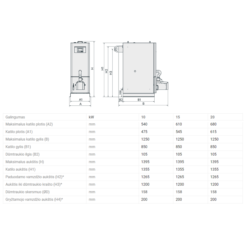 | Maks. galios diapazonas | nuo 15 iki 20 kW |