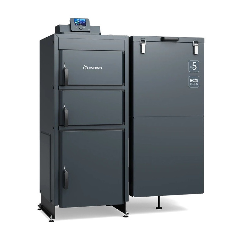 Penktos klasės kombinuotas granulinis katilas Multi KG yra aukšto naudingumo - 84 %. Katilo Kamen Multi KG kuro talpa gali būti kairėje arba dešinėje. Lauko temperatūros daviklis komplekte.