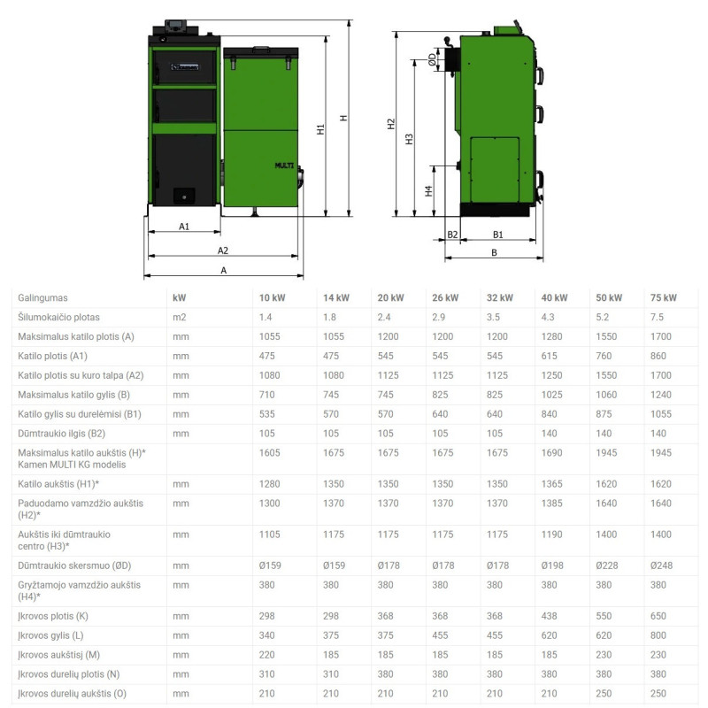 | Katilo aukštis, mm | 1945 |