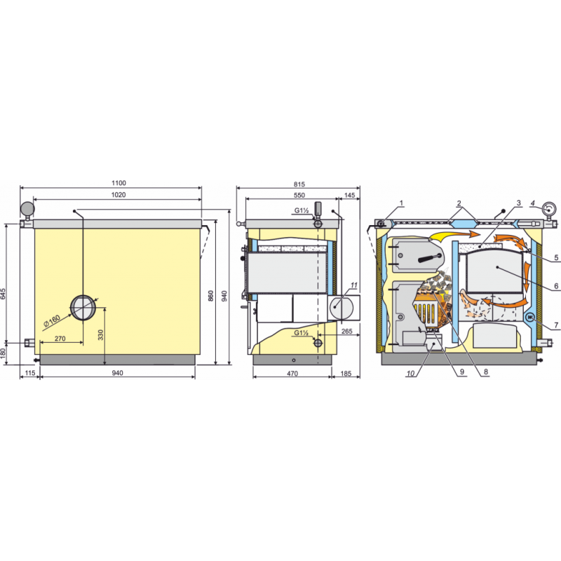 | Katilo tipas | Kieto kuro katilas-viryklė |
