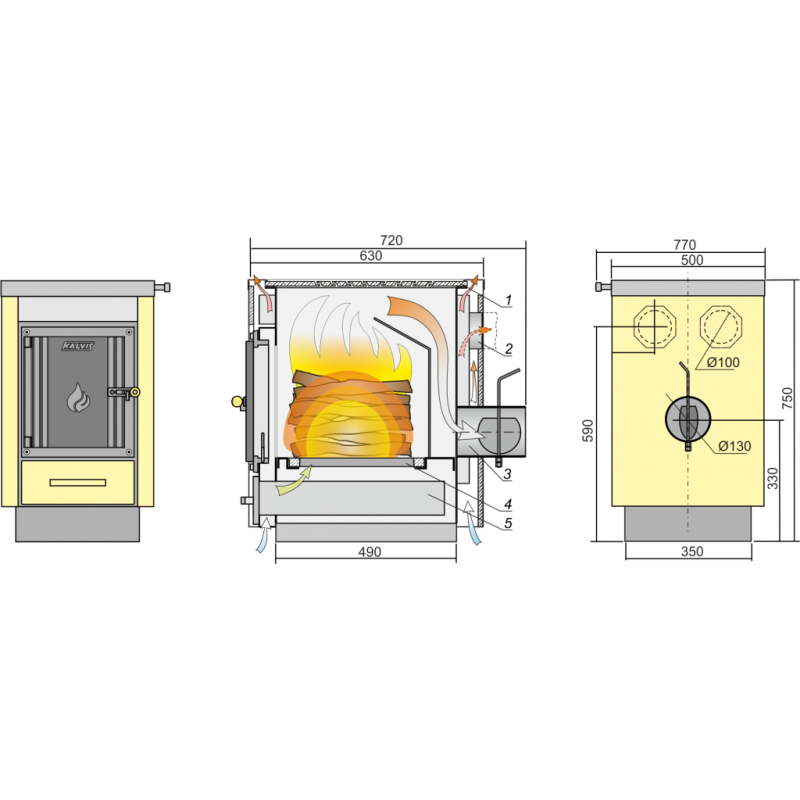Kieto kuro katilas-viryklė Kalvis K-KO2N, orinė