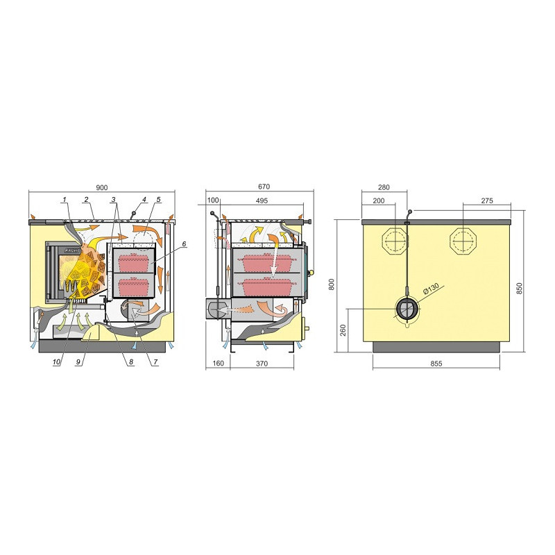 Kieto kuro katilas-viryklė, Galia 14kW, Orinė, Su orkaite, Aukštas naudingumo koeficientas, Dvi kaitvietės, Didelė kuro įkrova, Plačios pakuros durelės, 6mm vidinių sienelių plieno storis