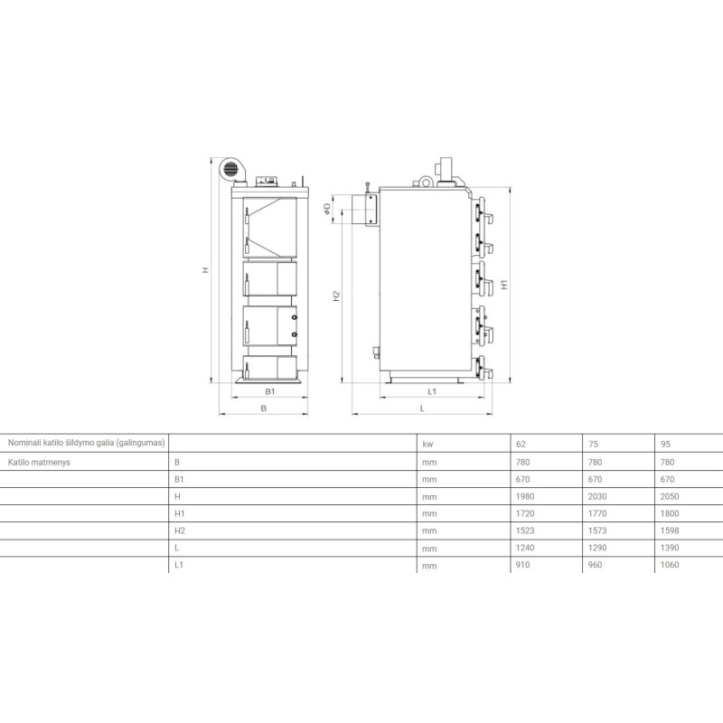 | Katilo aukštis, mm | 2030 |