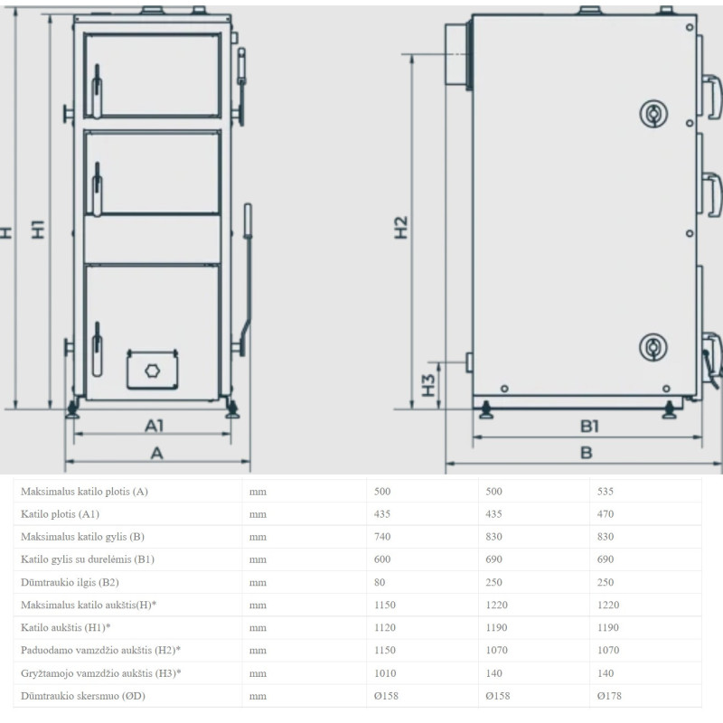 | Katilo kuro tipas | Malkos;Anglis;Briketai |