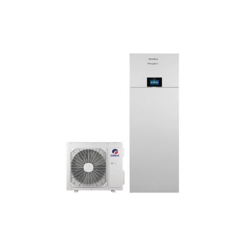 Gree Versati III Duo šilumos siurblys patogiai valdomas spalvotu, lietimui jautriu ekranu bei integruotu Wi-Fi - išmaniuoju telefonu. Į komplektaciją įeina: trieigis vožtuvas, patalpos termostatas, karšto vandens šildytuvo temperatūrinis jutiklis, išorinės dalies dugno pašildymo laidas, signalinis laidas tarp vidinės ir išorinės dalies bei valymo filtras. Integruota 185 l karšto vandens ruošimo talpa.