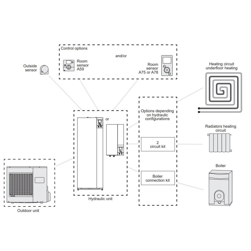 Prie Atlantic Alfea Extensa AI 8 šilumos siurblio yra galimybė prisijungti papildomų priedų: vidaus temperatūros daviklį, baseino šildymo modulį, 2-ojo šildymo kontūro modulį, rezervinį katilą, vandens šildytuvą, internetinį valdiklį (kurio pagalba galėsite valdyti šilumos siurblį internetu arba išmaniuoju telefonu), pagalbinį elektrinį šildytuvą (perkamas atskirai).
