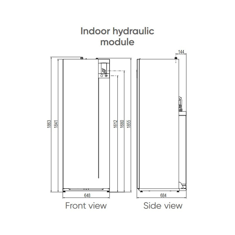 - Hidraulinio modulio matmenys(PxAxG) - 648x1863x684 mm
